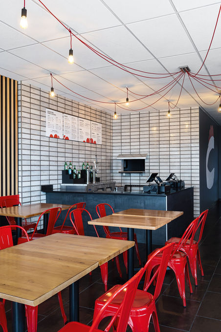 Wyn Design Co.'s third collaboration with the clients of Chi Mc created yet another successful and bustling location. Defined by the bold splash of red, the modern minimalist interior creates a canvas for great food and great memories. Wyn Design Co's dynamic approach to interiors is captured in the attention to details, use of materials and execution of the design concept.